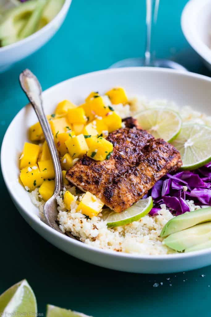 The buttery cilantro rice was the perfect carb to put on top of it. You will be once you try these light and healthy low carb grilled fish tacos. Made with cauliflower rice, it's paleo and whole30 friendly. Place in the fridge until ready to use. There's no shortage of fish restaurants in the area and blackened fish taco bowls are one of my favorite things to eat when we're there.